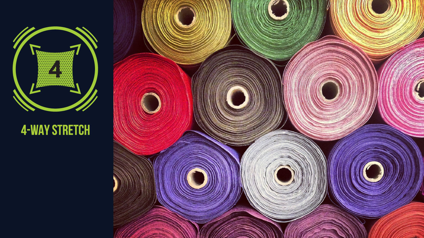 The material allows for a 2 dimensional stretch which makes it more fitting for different body types unlike vertical stretch materials.